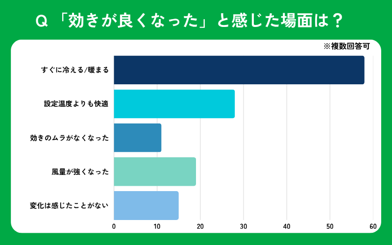 エアコンクリーニング後に「効きが良くなった」と感じたのはどのような場面でしたか?(複数回答可能)