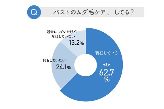 多くの方が気にしているムダ毛ですが、現在ケアをしているか聞くと「している」と答えたのは62.7%、「何もしていない」と回答した方は24.1%でした。気になってはいても、どういったケアをしたらいいのか分からないという方も多いのではないのでしょうか。
