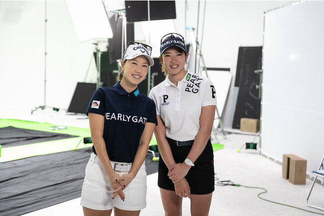 当社が展開する人気ゴルフブランド「PEARLY GATES(パーリーゲイツ)」の契約アンバサダーでもある上田桃子選手と原英莉花選手。本CM衣装でも着用しており、上田桃子選手は「(パーリーゲイツは)私がずっと愛用させていただいているブランドです。いつもおしゃれなウエアを着て戦うことができるのを嬉しく思っています。今までゴルフをしたことがない人にも(CMを通して)このブランドを知ってもらいたいと思っています。」とコメントしました。原英莉花選手は「全部CGを使用した撮影は初めてだったのでどんな仕上がりになるか楽しみです。ワクワクしています。」と撮影を振り返りました。