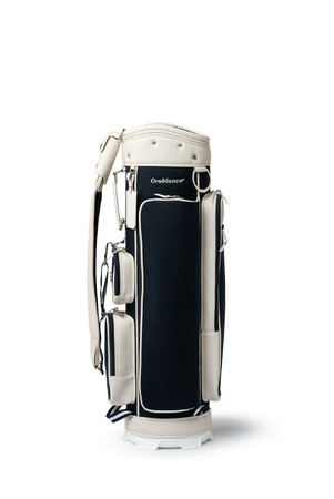 強度に優れた高機能ナイロン織物" コーデュラ1000dnナイロン" を採用したキャディバッグシリーズ。部分的にアイボリー色の合成皮革を配したコンビネーションカラーが特徴のデザイン。クラシカルなテイストを取り入れながら、機能性にもこだわったキャディバッグです。