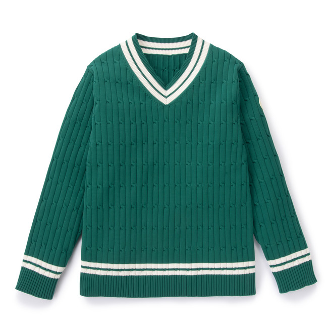 ライトウェイトでサスティナブルなリサイクルポリエステルニット糸を採用したチルデンニット。一般的なウールやコットンニットといった天然繊維糸に比べ軽量でさらっとした肌触りが特徴です。また糸レベルではっ水加工を施しているため軽微な雨であれば水をはじいてくれます。秋冬はもちろんのこと春先にも重宝するトラッドスタイルのキーアイテムです。