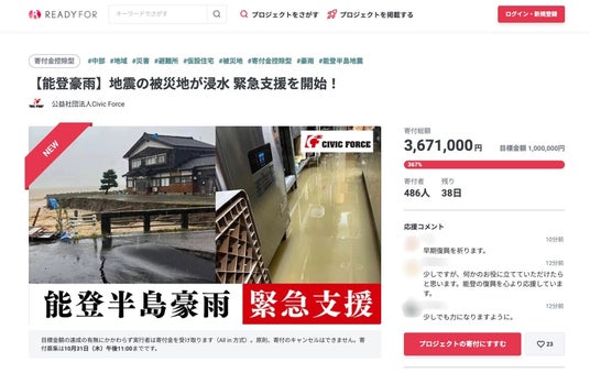 READYFOR株式会社(本社:東京都千代田区、代表取締役CEO:米良はるか)は、令和6年9月21日に石川県能登地方で発生した豪雨の被災地支援を目的としたクラウドファンディングプロジェクトを公開、寄付金の募集を開始いたしました。