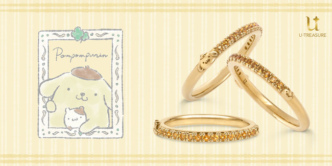 大人のための本格的なキャラクタージュエリーを扱うユートレジャー(東京都豊島区:代表取締役:伊藤 崇史)は、株式会社サンリオのキャラクターとのハーフエタニティリング(指輪)4ヶ月連続企画の第二弾「ポムポムプリン」を発表します。このほどの新作は、ポムポムプリンとお友だちのマフィンが、連なる15ピースの天然石シトリンのサイドにデザインされたハーフエタニティ(指輪)です。1月10日(月)~2月8日(火)の期間に予約受付を行ないます。ユートレジャーコンセプトストア池袋、ユートレジャーオンラインショップにて取り扱います。