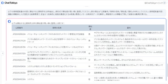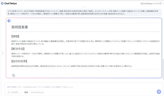 本事例では、倉庫ロボットの動作ログやセンサー解析結果を入力することで、AIが短時間で発明提案書を自動生成した。