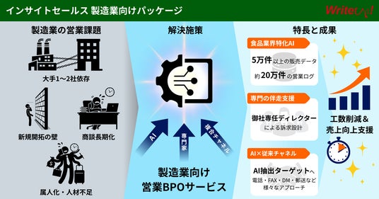 株式会社ライトアップ(証券コード 6580)は、製造業向けのAIを活用した営業BPOサービス「インサイトセールス 製造業向けパッケージ」を2026年1月28日(水)より提供開始いたします。