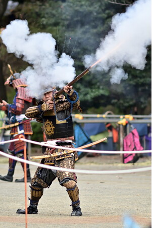 町田時代祭りは、今年で14回目を迎えます。町田駅周辺を練り歩く時代行列を皮切りに、木々が色づき始める芹ヶ谷公園で、銃声とともに火薬のにおいがたちこめる迫力の砲術、会場に緊張がはしる古武術演武と居合抜刀、そして馬が駆け、的を射る音が響く流鏑馬が披露されます。