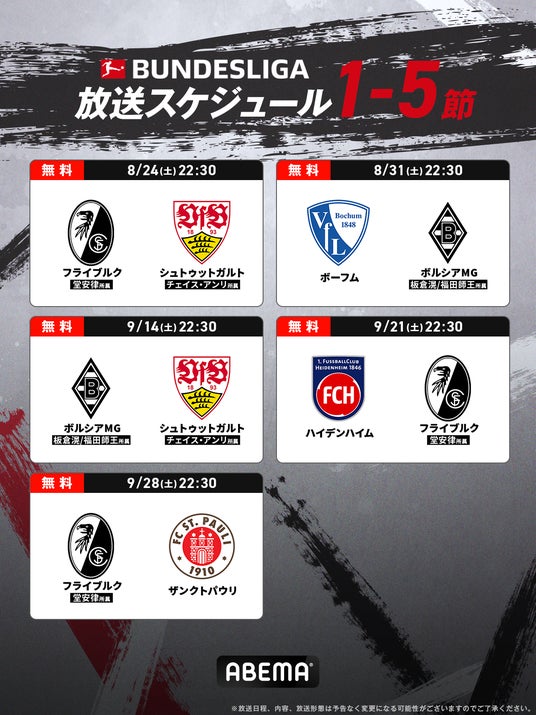 ■ABEMA 「ブンデスリーガ」2024-25シーズン 無料生中継スケジュール
