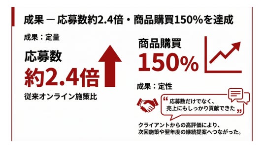 - 応募数 約2.4倍、商品購買 150% を実現
