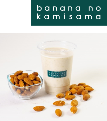 「アーモンド効果」をご活用いただくタイミングで、独立したオリジナルメニューとしてアーモンドミルクバナナスムージーが新登場しました。カスタマイズメニューとしてもミルクからアーモンドミルクにベース変更ができ、お好みのスムージーと合わせてお召し上がりいただけます。