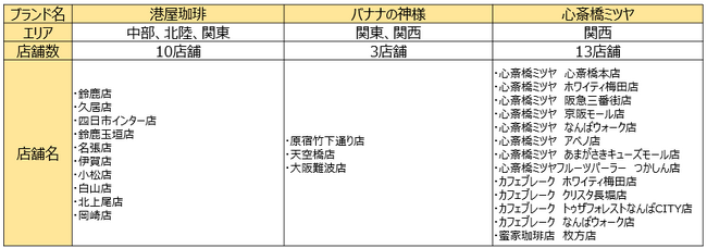 「港屋珈琲」「バナナの神様」「心斎橋ミツヤ」の限定26店舗