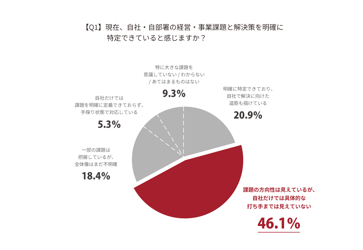 以上の調査から、導かれた課題設定が曖昧なまま意思決定が行われ、戦略が現場に翻訳されず「描くだけ」で止まってしまう、そして「戦略と実行の断絶」を埋められていないという現代企業における構造的な課題が浮き彫りとなりました。