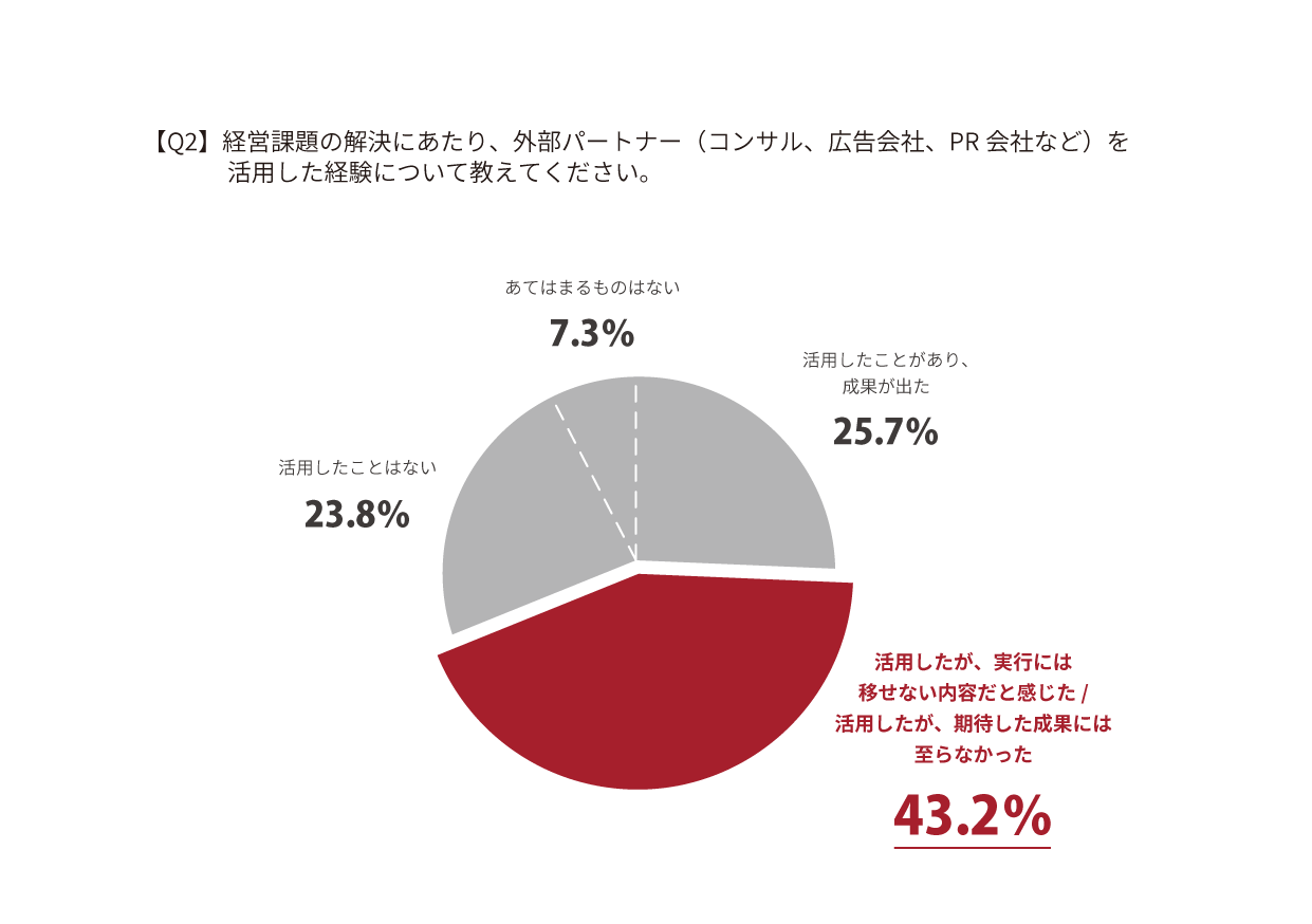 外部企業の支援は、結果机上の空論や期待した成果には至らないと答えた方は約40%も感じている。