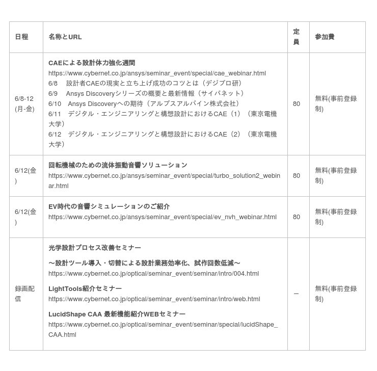 『CAE関連のオンライン技術セミナー』