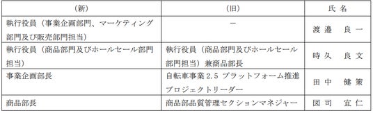 株式会社あさひ(所在地:大阪市都島区、代表取締役社長:下田佳史)は、2026年2月9日開催の取締役会において、社内組織変更に伴う執行役員及び部長人事について以下のとおり決議いたしましたので、お知らせいたします。