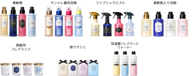 2013年9月の発売以降、柔軟剤、洗剤、ファブリックミスト、芳香剤を展開しており、お気に入りの香りを様々なシーンで楽しむことができます。