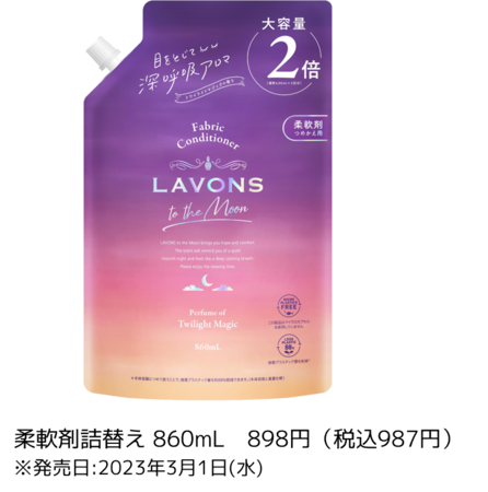 株式会社ネイチャーラボ(本社:東京都渋谷区)が展開するプレミアムホームケアブランド「ラボン」は、深呼吸アロマシリーズ『ラボントゥザムーン(LAVONS to the Moon)』のベッドルームペーパーフレグランスと、柔軟剤詰替え2倍を、2023年3月1日(水)より全国で発売いたします。
