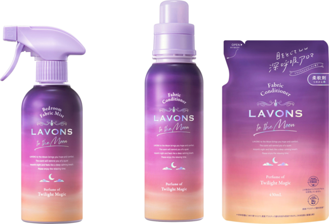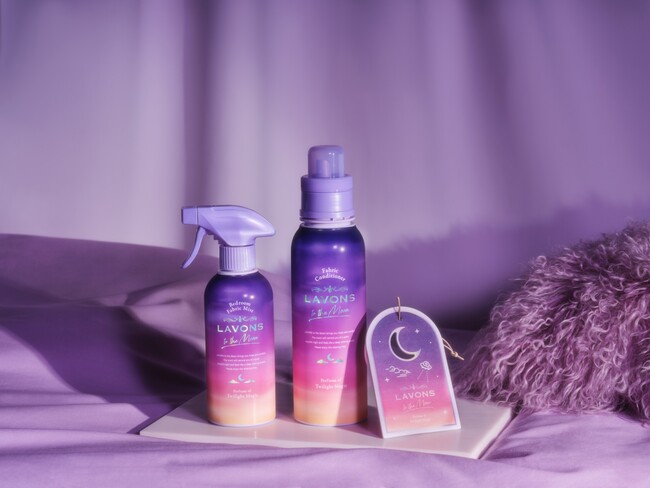 そこで今回、第1弾で発売された「トワイライトマジックの香り」のベッドルーム&ファブリックミストと柔軟剤に加え、吊り下げタイプのベッドルームペーパーフレグランスと、柔軟剤の詰替え2倍サイズを発売いたします。