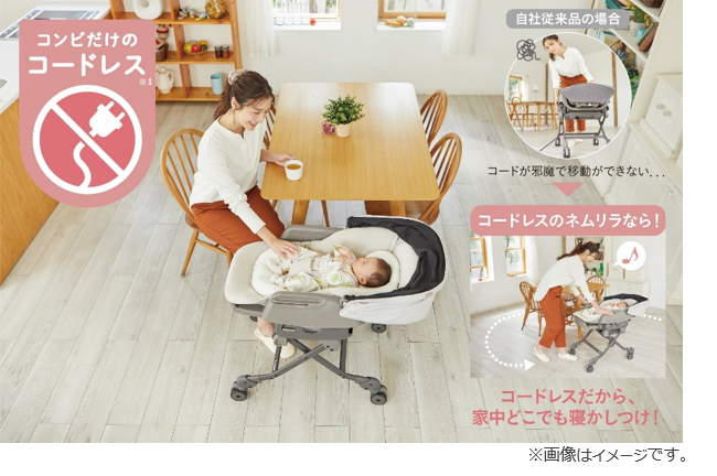 コンビだけの(※1)コードレスと長い期間使えるオートスウィング機能で子育ての「不」を軽減!