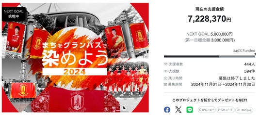皆様から温かいご支援のおかげで最終支援金額が7,228,370円となりました。名古屋グランパス一同、心より感謝申し上げます。