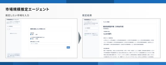 本エージェントの活用により、コンサルティング会社に依頼すると数百万円・数週間かかる市場規模算出や斬新かつ実現性のある事業アイデア導出を、数時間で実行可能な上、費用も数分の一と大幅に削減しながら実現可能になります。