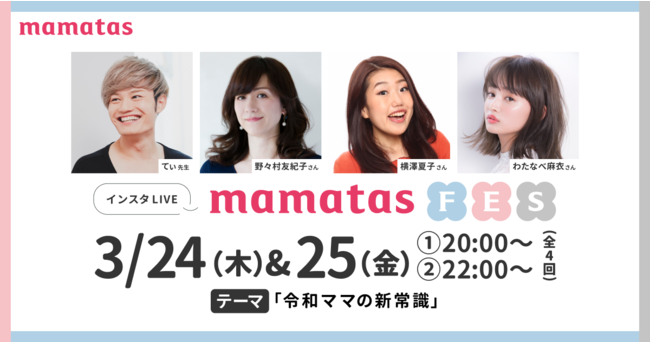 3/24(木)~3/25(金)、総フォロワー数110万以上のママメディアによる、令和ママ応援!Instagramライブ配信