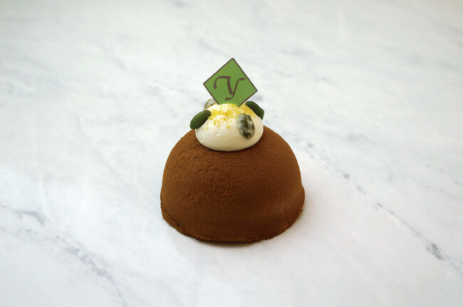 ピスタチオのクレームブリュレにショコラのムースを合わせました。