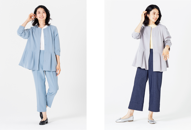普段のコーディネートには取り入れにくく、その場限りになってしまうことが多いオケージョンシーン向けのアイテム。もったいないと感じる方は多いのではないでしょうか。そんな悩みを解決すべく、新作の「【すごナノ撥水】ペプラムジャケット」は、機能性・素材・デザインにこだわることで、入卒園などのオケージョンシーンにはもちろん、日常使いにもピッタリなアイテムです。また1月12日(金)に発売された「【すごナノ撥水】テーパードパンツ」、2月2日(金)に発売された「【すごナノ撥水】タックワイドパンツ」も、同じくオケージョンシーンから日常使いまでマルチに活躍します。