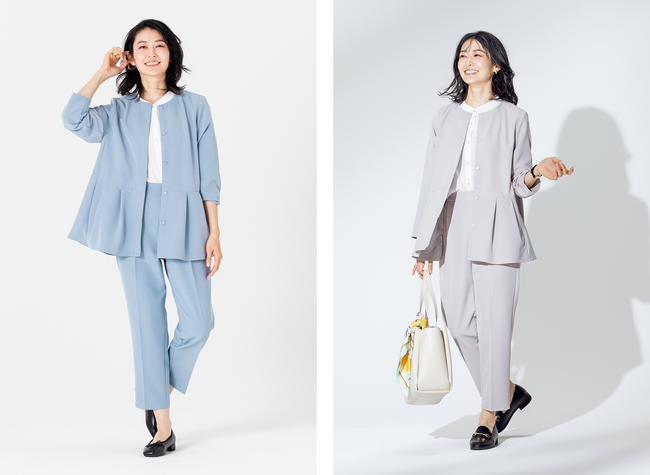 オケージョンシーンでしか使用できないという悩みを解決し、日常でもおしゃれにそしてきれい見せしてくれる新作の「【すごナノ撥水】ペプラムジャケット」、そして「【すごナノ撥水】テーパードパンツ」、「【すごナノ撥水】タックワイドパンツ」で春の行事やお出かけをお楽しみください。