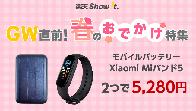 楽天市場「Show !t」は4月9日(日)20時からシャオミのMiバンド5をおトクなセール価格での販売とご購入の方にポイント20倍プレゼントを実施し、シャオミMiバンド5とモバイルバッテリーのお得な特別価格セットの販売を実施します。4月9日(日)20:00~4月16日(日)01:59まで開催される楽天お買い物マラソンに参加し、全商品ポイント10倍プレゼントを実施します。