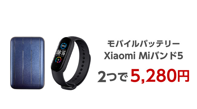 セットがお得!ポイント10倍 Xiaomi Miバンド5とマグネット付きモバイルバッテリー(ブルー)2980円相当のセット 5,280円(税込)