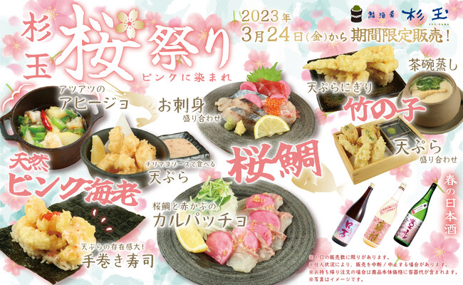 株式会社FOOD & LIFE INNOVATIONS(本社:東京都千代田区、代表取締役社長:山邉 圭介)は「鮨 酒 肴 杉玉」にて、3月24日(金)より、“桜鯛”や“天然ピンク海老”、春らしいデザインの限定酒が登場する『桜祭り』を期間限定で開催いたします。