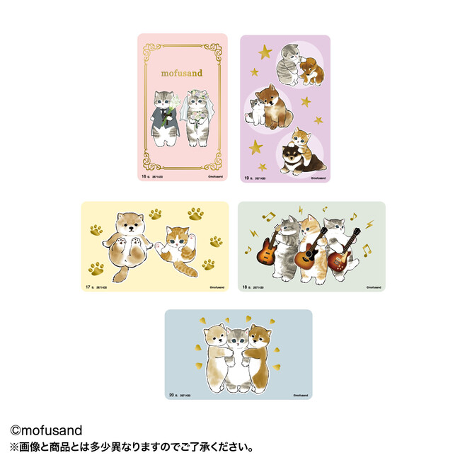 『mofusand』のポケットティシュ2個に、シールが1枚付いた商品を20個セット(1BOX)にて販売!ティシュの絵柄は全5種類。レアシールは、箔押し仕様のシールで全5種類。ノーマルシールは、全15種で、シールの大きさは、約90mm×55mmの大きめで、全てマット仕様のシールとなっております。