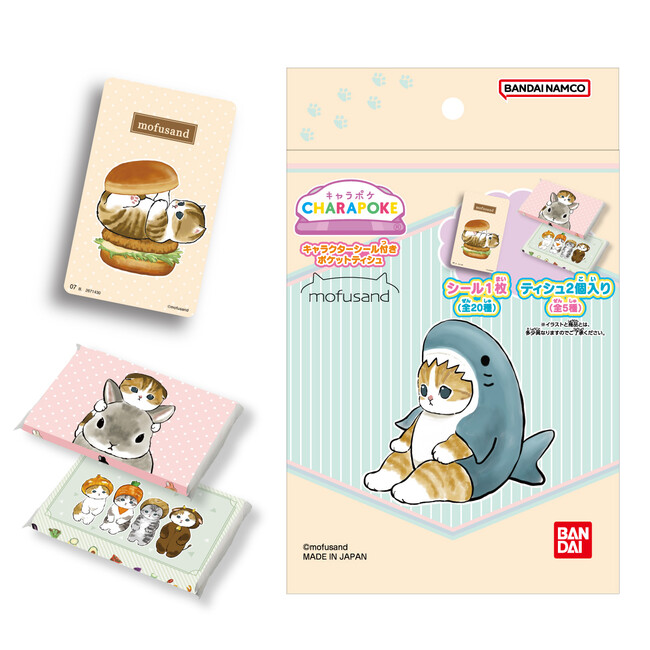 株式会社バンダイ ファッションブランド事業部は、人気キャラクター『mofusand』より、かわいいシール付きポケットティシュ「キャラポケ mofusand」(165円・税10%込/150円・税抜)を全国の一部ファミリーマート、その他コンビニエンスストア、mofusandショップ、キデイランド、ヴィレッジヴァンガード、ECサイトなどで2023年3月28日(火)より順次発売いたします。※店舗により取り扱いの無い場合もございます。