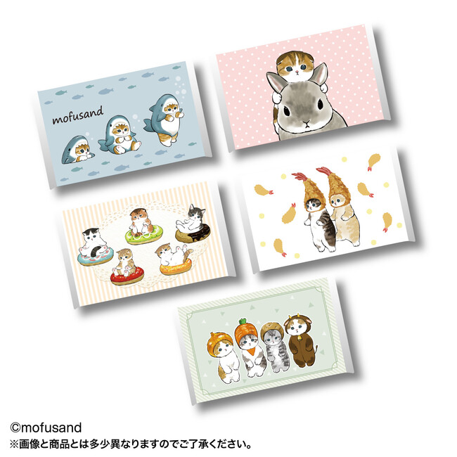 ポケットティシュは、『mofusand』のかわいいシーンがたくさんつまった全5種類のデザインとなっています。