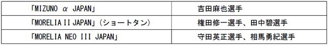 今回のラインナップは、11月3日に発表した「MIZUNO α」(ミズノ アルファ) シリーズから展開される「MIZUNO α JAPAN」(ミズノ アルファ ジャパン)、そして「MORELIA II JAPAN」(モレリア ツー ジャパン)※、「MORELIA NEO III JAPAN」(モレリア ネオ スリー ジャパン)のトップモデル全3種類です。