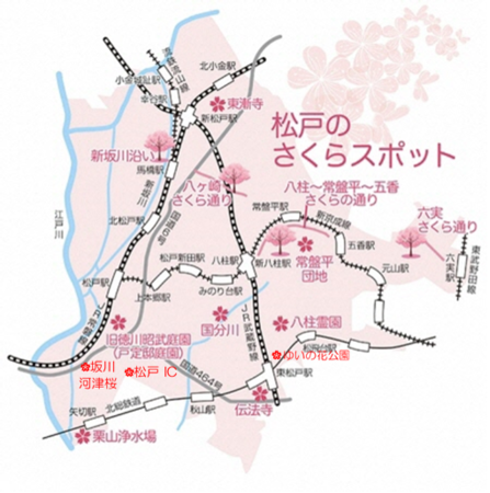 松戸市内には、通りの名前に「さくら」がつく道が6つあります。