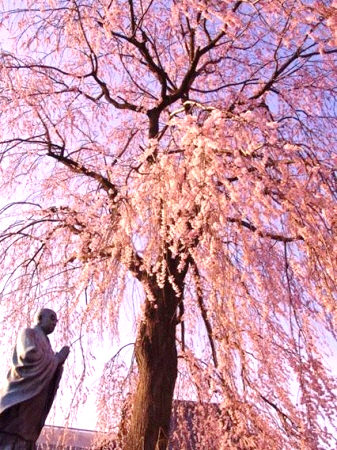境内にある枝垂れ桜は、日蓮上人の像と一緒に楽しむことができ、どことなく京都の様な風情も感じられる美しいさくらです。凛とした姿が美しい一本桜がお楽しみいただけます。