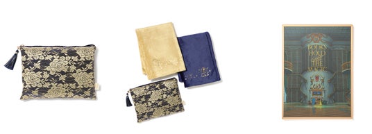 物語の最初の1ページをイメージしたデザインのトートバッグです。各作品のストーリーにまつわるモチーフがふんだんに盛り込まれています。大人の女性でも日常使いしやすいよう、落ち着いた高級感のあるカラーで統一しています。ノートPCも入るサイズで背面にはジッパーポケットが付いており機能性にも優れています。