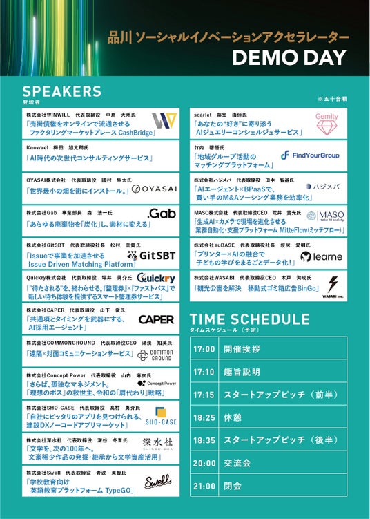 社会課題の解決を志すスタートアップを支援する本プログラムを通して、約半年間ビジネスプランやプロダクトを磨いてきた受講生の成果発表を実施します。
