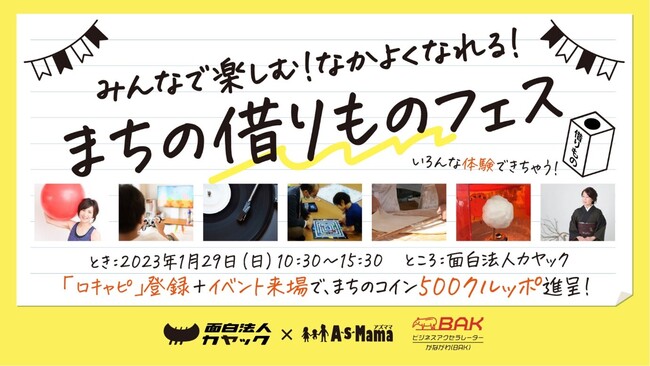 「住民や地元団体から貸し出される私物を活用した地域交流イベント『まちの借りものフェス』」(以下 本イベント)について