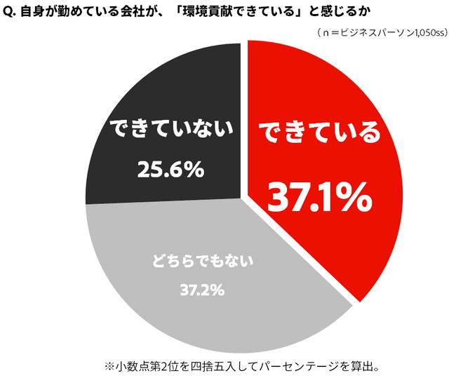 自身が勤めている会社が「環境貢献できている」と感じている人は、全体の37%程度