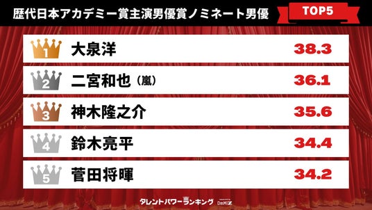 今回は、日本アカデミー賞主演男優賞にノミネートされたことがある歴代の男優に焦点を当て、パワースコアをタレントパワーランキングで検証しました。