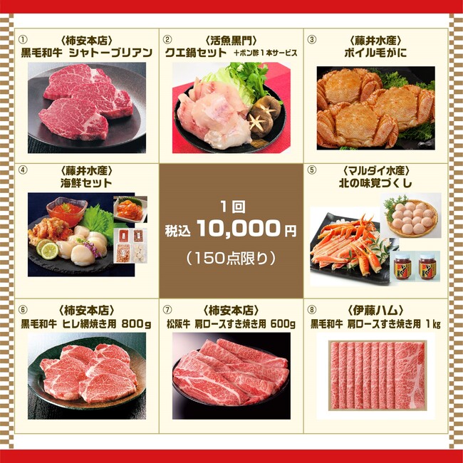 【1回 税込10,000円】黒毛和牛 シャトーブリアンやクエ鍋セットなど、とっておきの日に食べたい豪華グルメが当たります。※150点限り