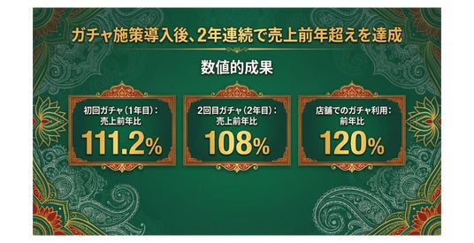 オンラインガチャ導入後、売上は2年連続で前年超えを達成しました。