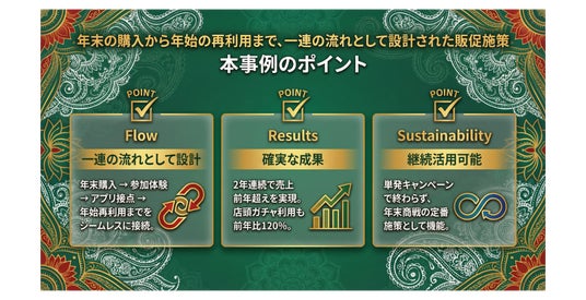 年末年始は売上が動きやすい一方、値引き中心の施策では印象に残りにくく、次回利用につながりにくいという課題があります。