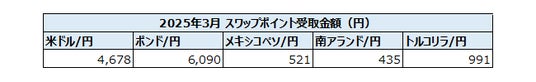 SBI FXトレード株式会社(本社:東京都港区、代表取締役社長:藤田 行生)は、2025年3月のスワップポイントの実績を公表しましたことをお知らせいたします。