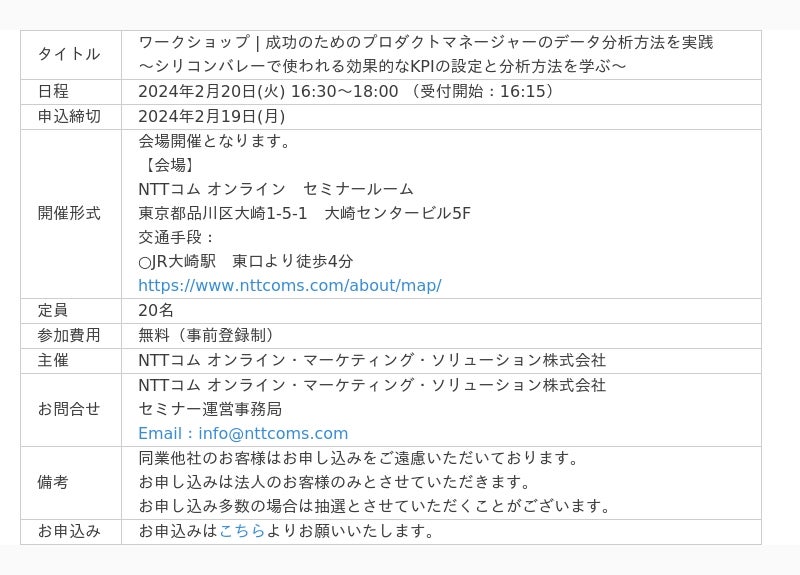プロダクトマネージャーが成功を収めるために重要なスキルである、KPIの設定方法とデータ分析方法に焦点を当てたワークショップ形式のセミナーです。