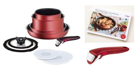 ティファール最高峰のチタン・アンリミテッドコーティングを採用したフライパン・鍋セットに、専用取っ手(スカーレット)とレシピブックがついたスペシャルセットです。