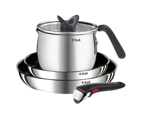 インジニオ・ネオIHステンレスエモーションのフライパンセット3にマルチポットがついたティファールならではの便利なセット。耐久性に優れたステンレス製で、熱伝導に優れた3層構造の底面が特長です。