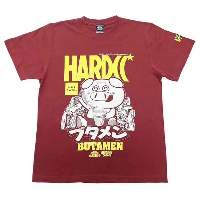 「#おやつの常識を超える」第28弾は、サブカルの枠に収まらない個性が際立った人気アパレルブランド「ハードコアチョコレート」とのコラボTシャツ!ベビースターキャラクターホシオくんだけでなく、初代や2代目の歴代キャラクターも加わった『ベビースターラーメン(チキンホワイト)』デザインTシャツと、おやつカンパニーのミニカップ麺・ブタメンをモチーフにした『ブタメン(ありがトンバーガンディ)』デザインTシャツの2種が、ハードコアチョコレートより、2023年7月13日(木)に発売されます。
